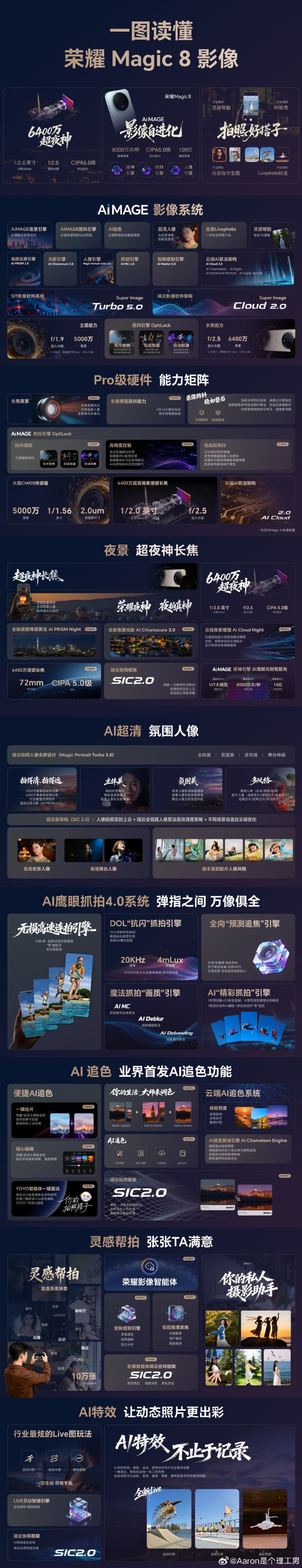 其实,继荣耀首席影像工程师 @罗巍Cyberverse 上任以来,旨在不断提升荣耀手机的影像性能和使用体验。10月28日,其曾发文称,“#荣耀magic8##荣耀aimage#